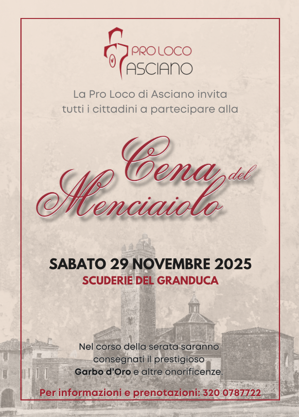 The evening will also include the presentation of the most anticipated awards: The Questione di Chimica Award, dedicated to those who, as part of Asciano’s “molecule,” strengthen the community through their active participation in the Pro Loco.