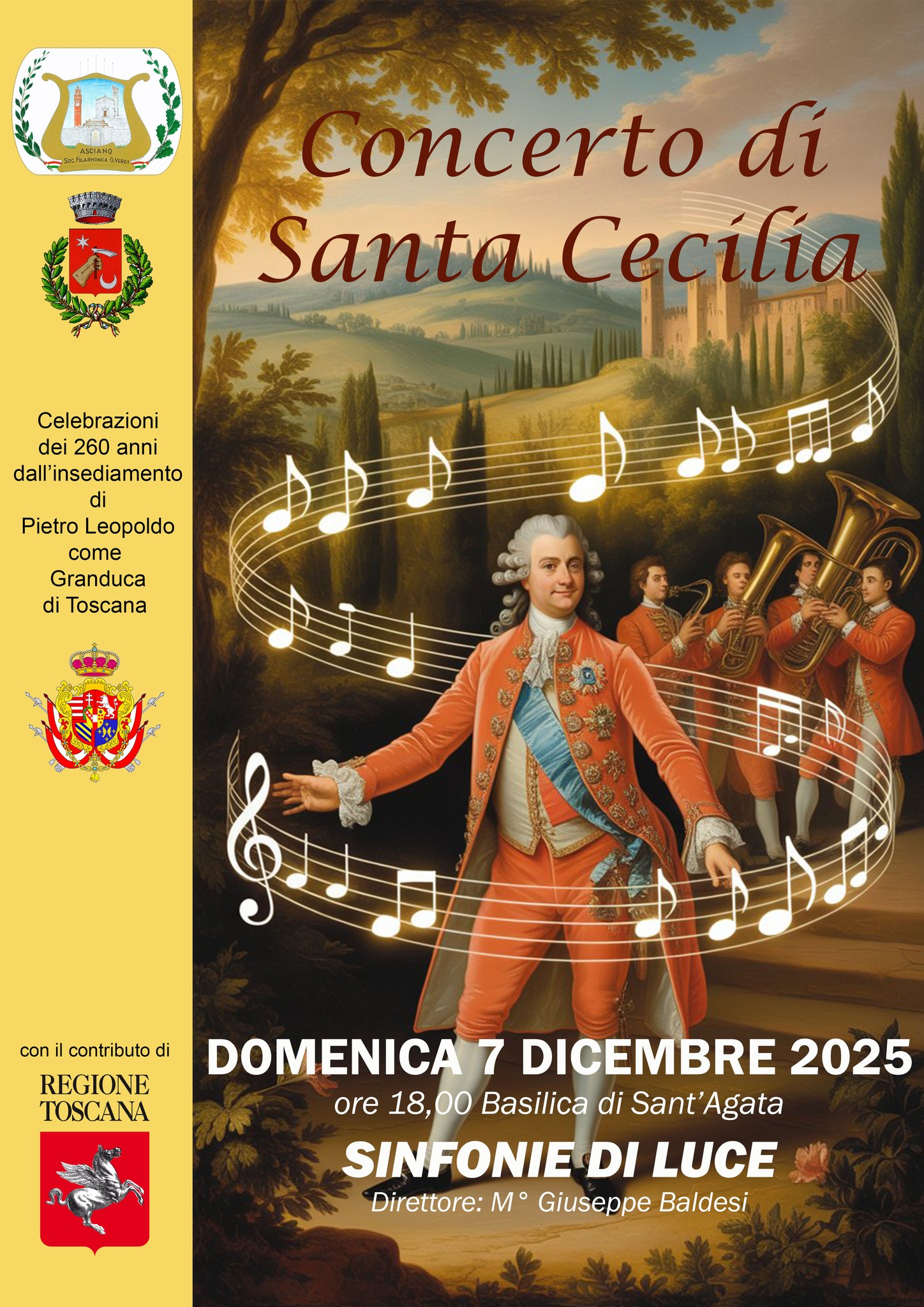Domenica 7 dicembre: Concerto di S.Cecilia: Sinfonie di luce-Celebrando Pietro Leopoldo - ore 18:00, Basilica di S.Agata, Asciano, a cura della Società Filarmonica “G.Verdi” di Asciano, diretta dal M°Giuseppe Baldesi
