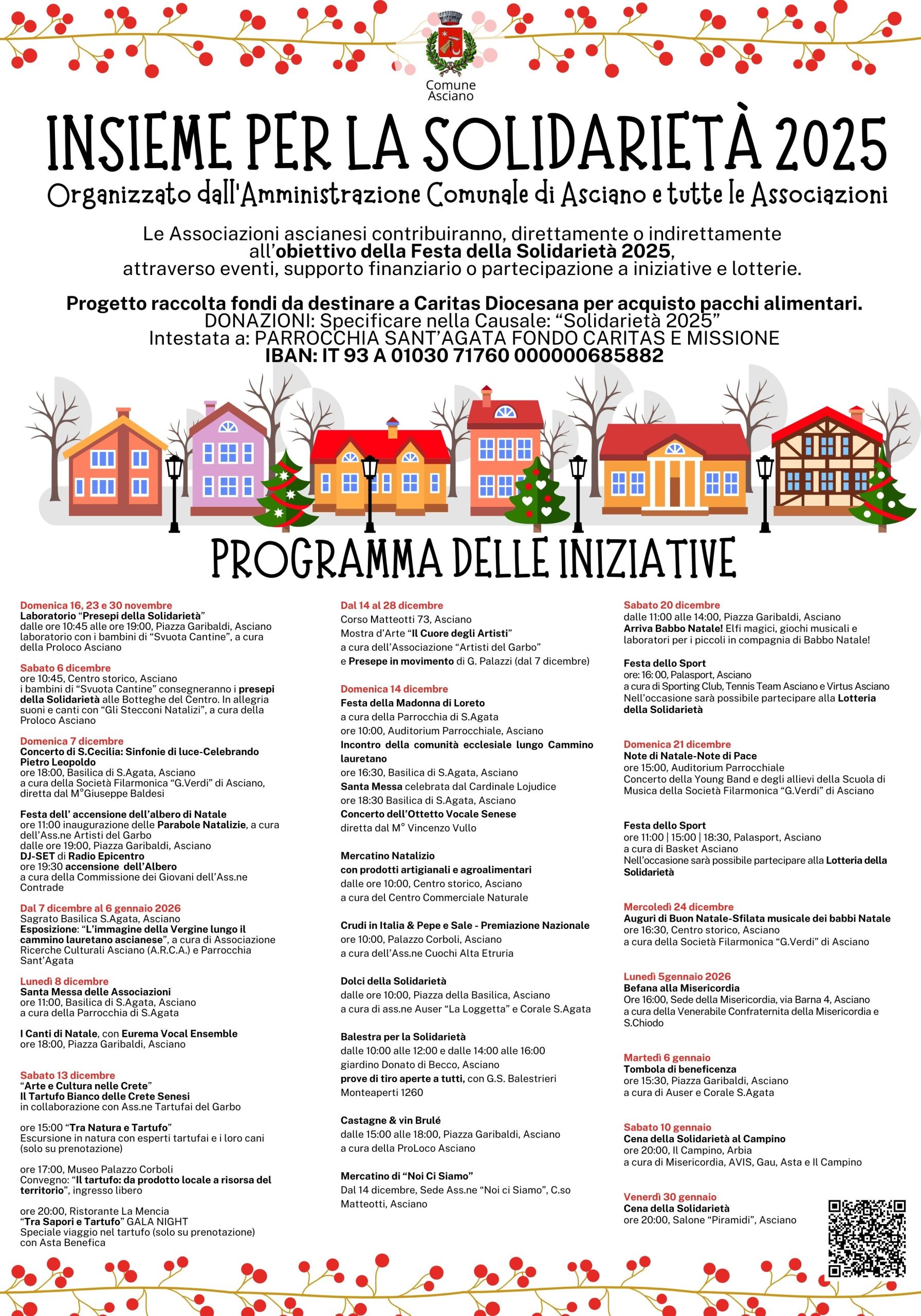 Sabato 6 dicembre ore 10:45, Centro storico, Asciano: i bambini di “Svuota Cantine” consegneranno i presepi della Solidarietà alle Botteghe del Centro. In allegria suoni e canti con “Gli Stecconi Natalizi”, a cura della Proloco Asciano