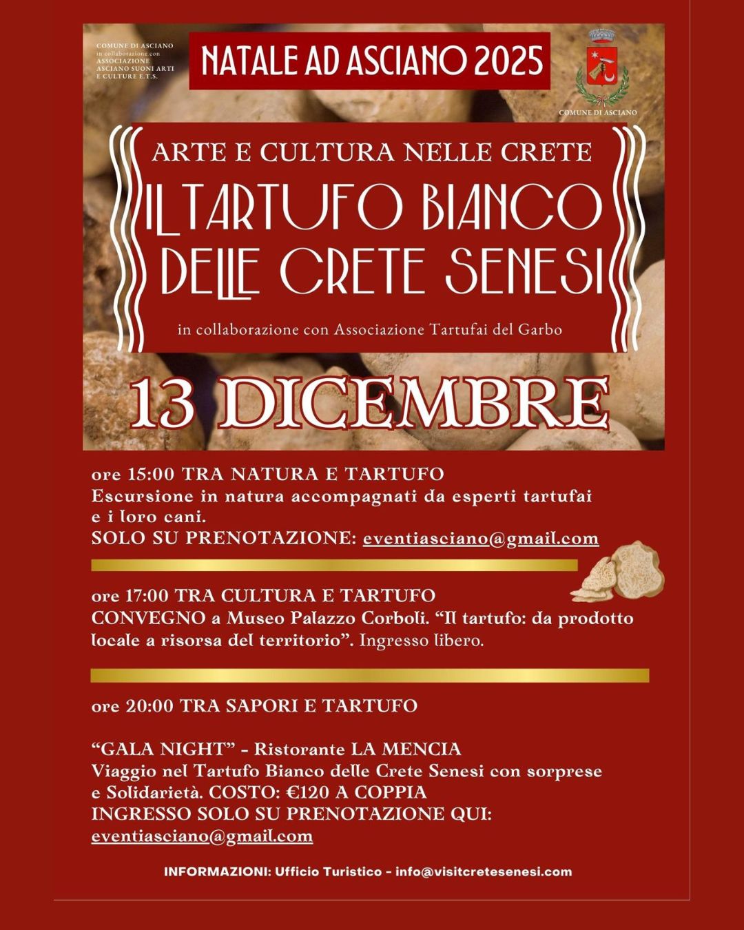 Sabato 13 dicembre “Arte e Cultura nelle Crete” Il Tartufo Bianco delle Crete Senesi, in collaborazione con Ass.ne Tartufai del Garbo