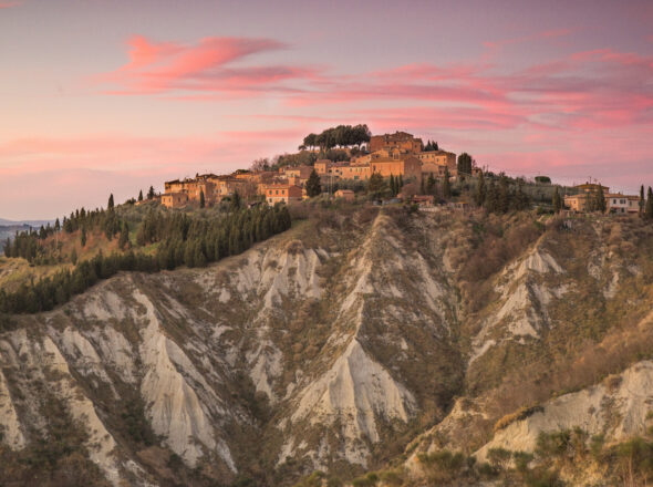 Adagiato sugli scenografici calanchi, il borgo di Chiusure narra le vicende di un popolo tenace e resiliente.